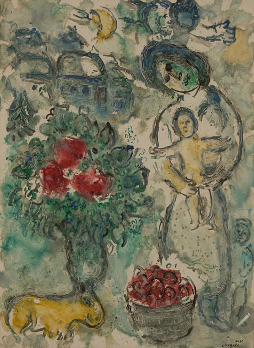 #마르크샤갈, 모성애와 바구니, 원화(原畵), Maternité au bouquet original, 60×44.5cm, 1974