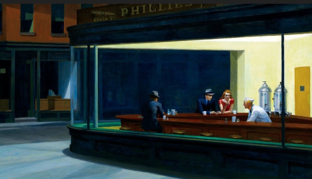 #EdwardHopper, '밤을 지새우는 사람들, Nighthawks', 1942, oil on canvas, 84.1 x 152.4cm, Art Institute of Chicago