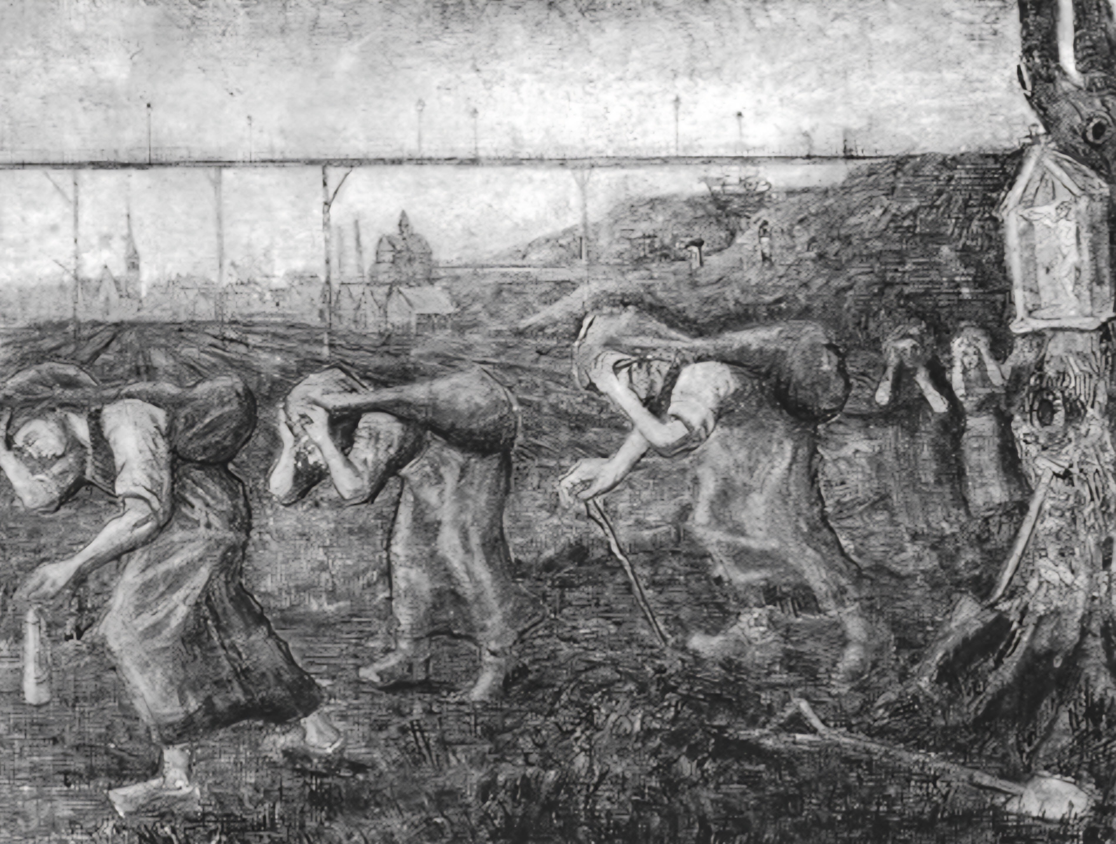 #고흐, Drawing, Pen, pencil, brush (ordinary wove paper, pasted), Brussels: April, 1881, Miners' Women Carrying Sacks (The Bearers of the Burden), 석탄 부대자루를 나르는 탄광여인들.43×60cm,