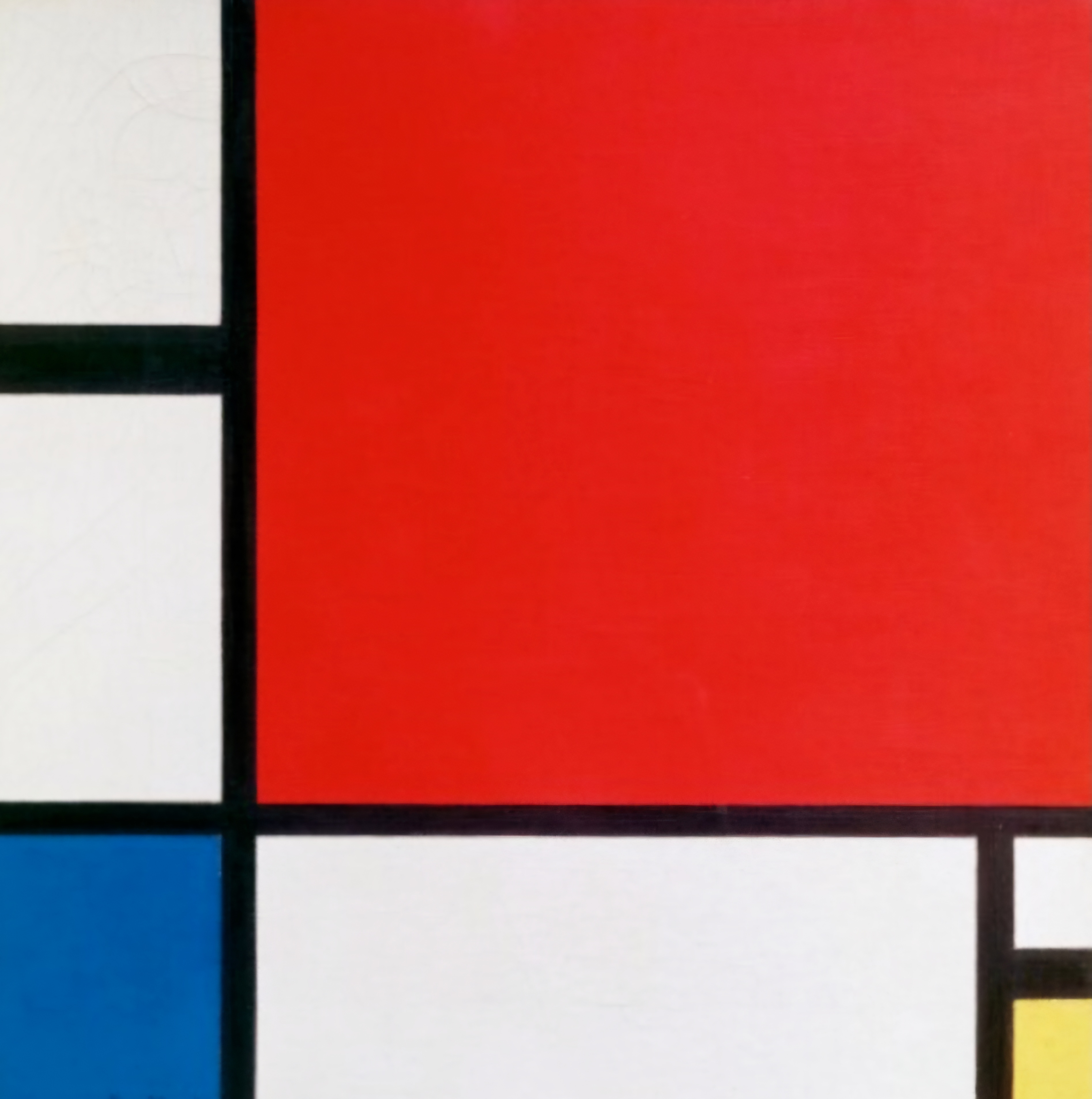 이러한 몬드리안의 믿음을 반영한 작품이 [빨강, 파랑, 노랑의 구성]인 것이다. 이렇게 사물의 보편적인 본질을 파악해 나가는 과정 속에서 몬드리안은 20세기의 추상미술의 선구자가 된다.