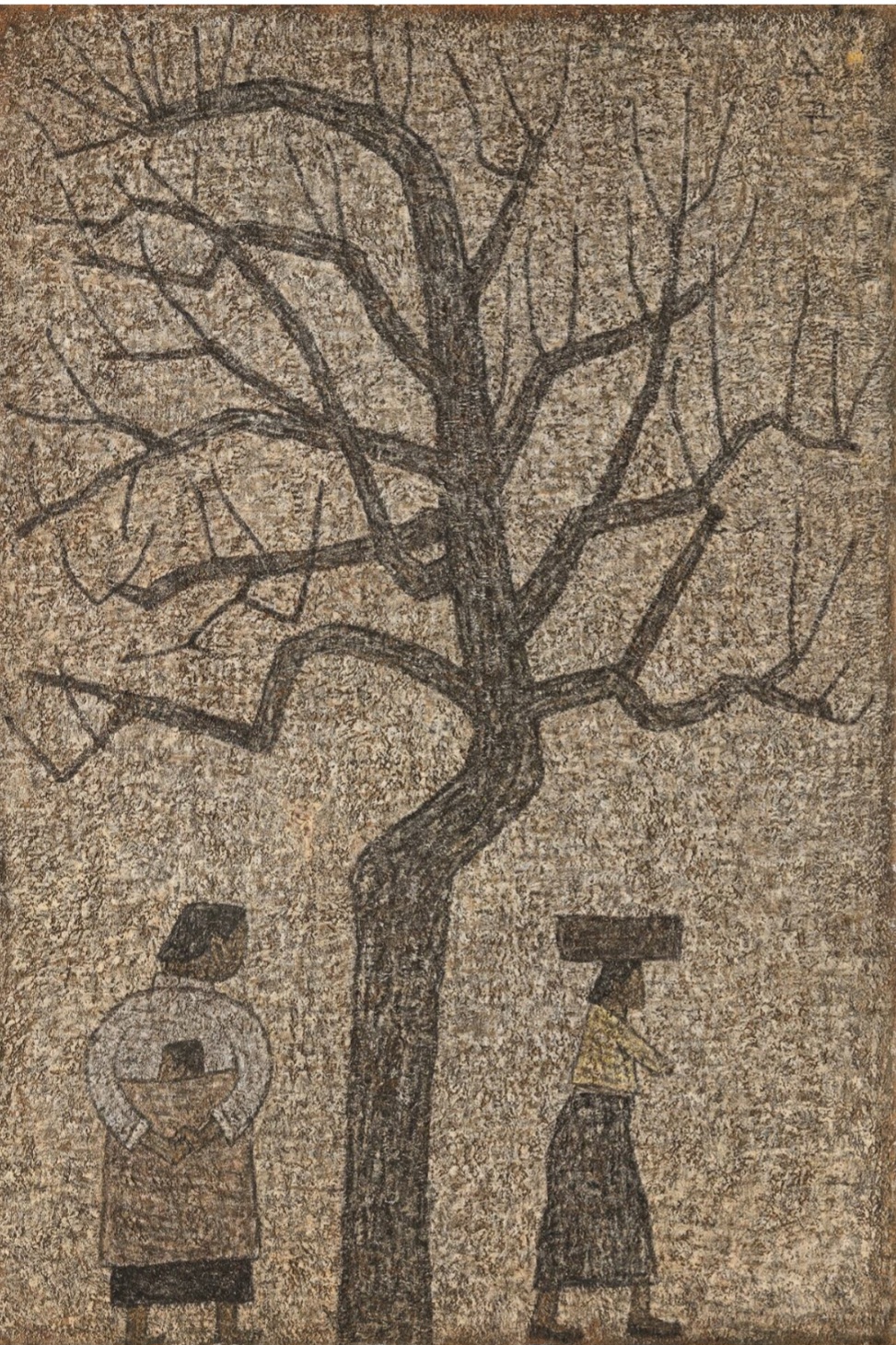 #박수근, 나무와 여인, 1956, 하드보드에 유채, 27×19.5cm, 리움미술관